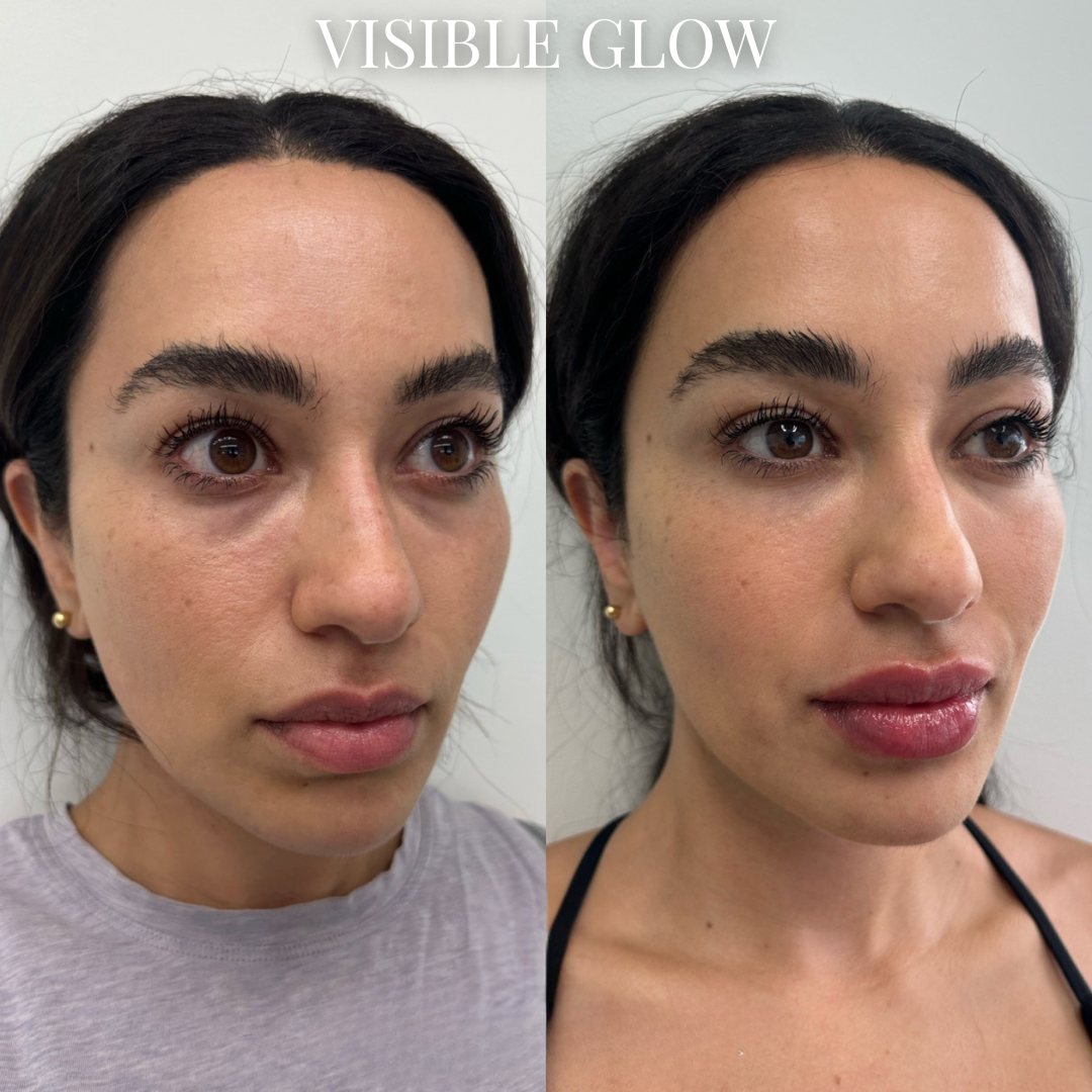 100% of clinical trial participants reported enhanced glow and radiance after just one use. Visible improvement in under-eye hollowness, smile lines and skin tone was measured after 2 weeks of consistent daily use. Most women notice their skin looks more rested within the first few days.