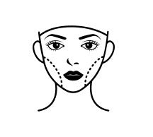 Directly onto your hollow zones — not all over your face. The five target zones are: under-eye hollow, cheekbone, smile lines, lip border and neck. Press the tip of the balm directly onto each zone. Two swipes. Let it melt in. That's the entire protocol.